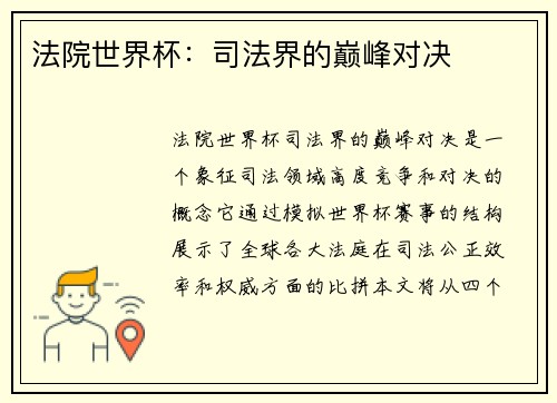 法院世界杯:司法界的巅峰对决